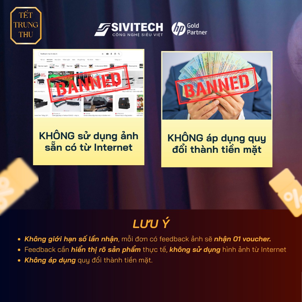 - Lưu ý: Feedback phải là ảnh thực tế sản phẩm/dịch vụ. Voucher không quy đổi thành tiền mặt.